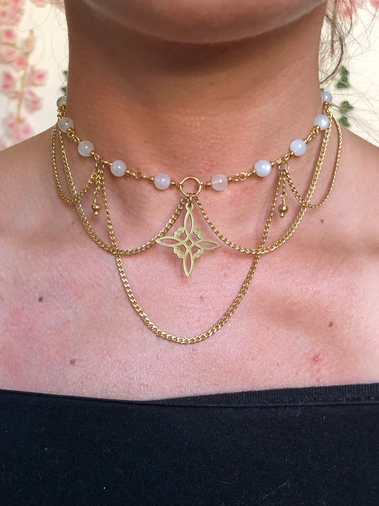 Collier « Lune Voilée »Pierre de Lune & noeud de sorcière