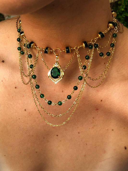 Collier « Muse Impériale » Aventurine verte étoilée