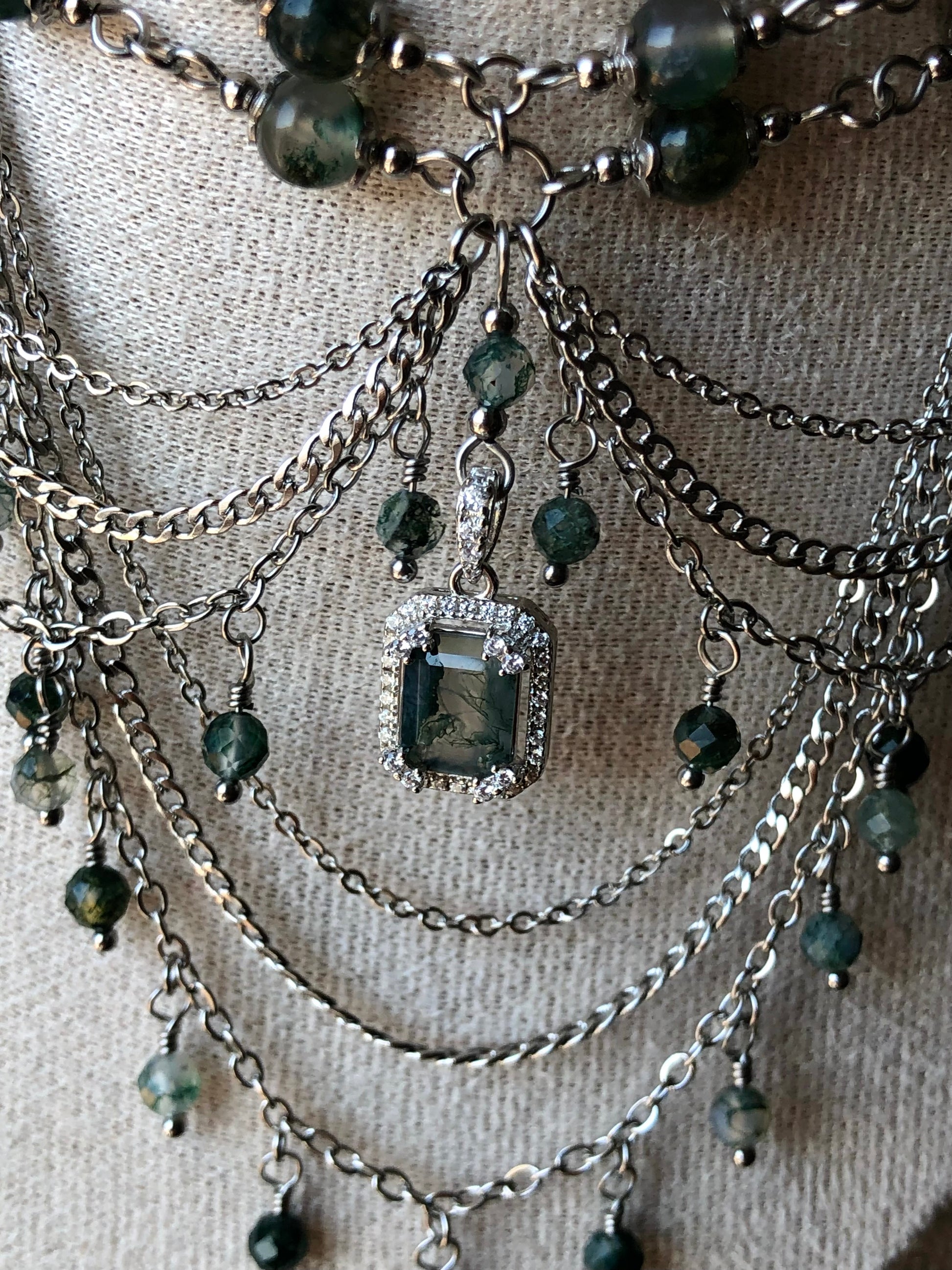 💎 Pendentif argent 925 contenant de l’agate mousse