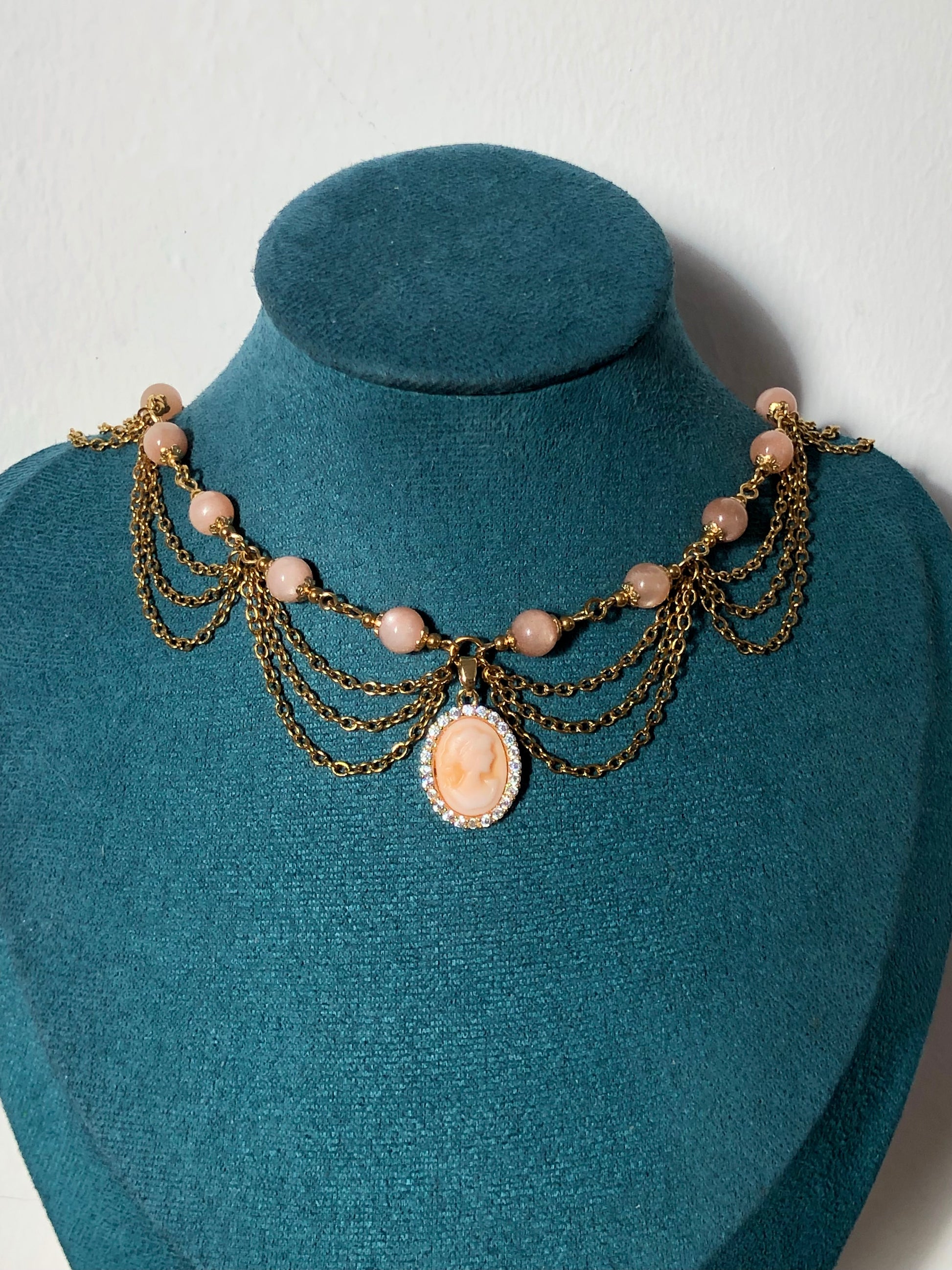 💎 Pendentif orné de zircon synthétique/Camée en résine
