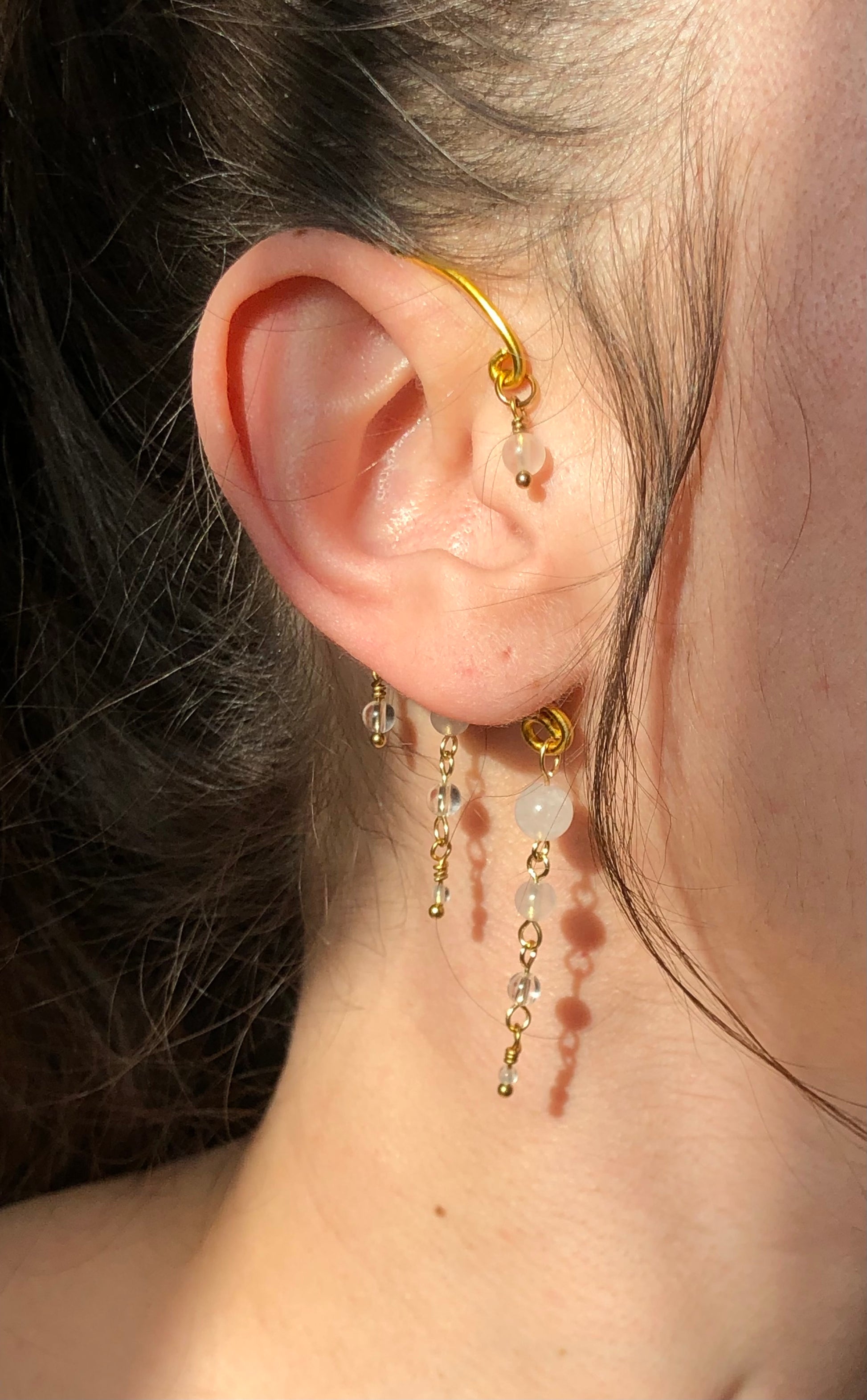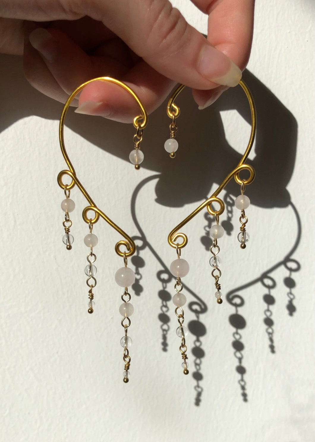 Manchettes d’oreilles Quartz rose & Cristal de roche